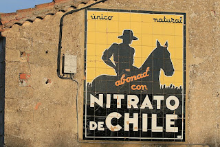 Quién no recuerda, al menos los que ya tenemos cierta edad seguro que sí, la imagen de los carteles de "Nitrato de Chile". Hay lugares en los que todavía se conservan algunos que se han restaurado y en otros, desgraciadamente, han desaparecido. Son carteles que muestran otra época y evocan cierta añoranza, estaban pegados en bares, casinos, ayuntamientos, dispensarios médicos, en las carreteras y en las tiendas de ultramarinos de los pueblos. Quiero recordar uno aquí en nuestra ciudad de Badajoz, que estaba situado a la entrada de la calle Eugenio Hermoso (Las Peñas) encima de Recauchutados Pulgarin.
